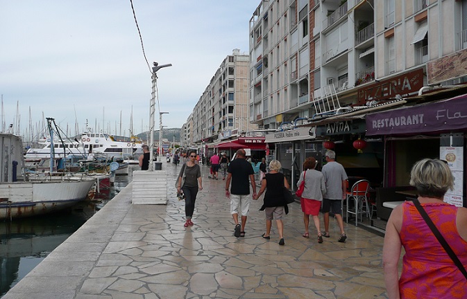 Przez te wyczytane ciekawostki, spodziewałam się portu na miarę Hamburga, albo chociaż Aleksandrii, a znalazłam się w romantycznym miejscu, otoczonym malowniczo wzgórzami, wśród których prawie nieruchomo wyrastały setki masztów małych stateczków, żaglówek i jachtów, poprzetykane gdzieniegdzie nadbudówkami niewielkich kurtów. Z tyłu, nieśmiało czaiły się słynne okręty marynarki wojennej dumnej Francji.