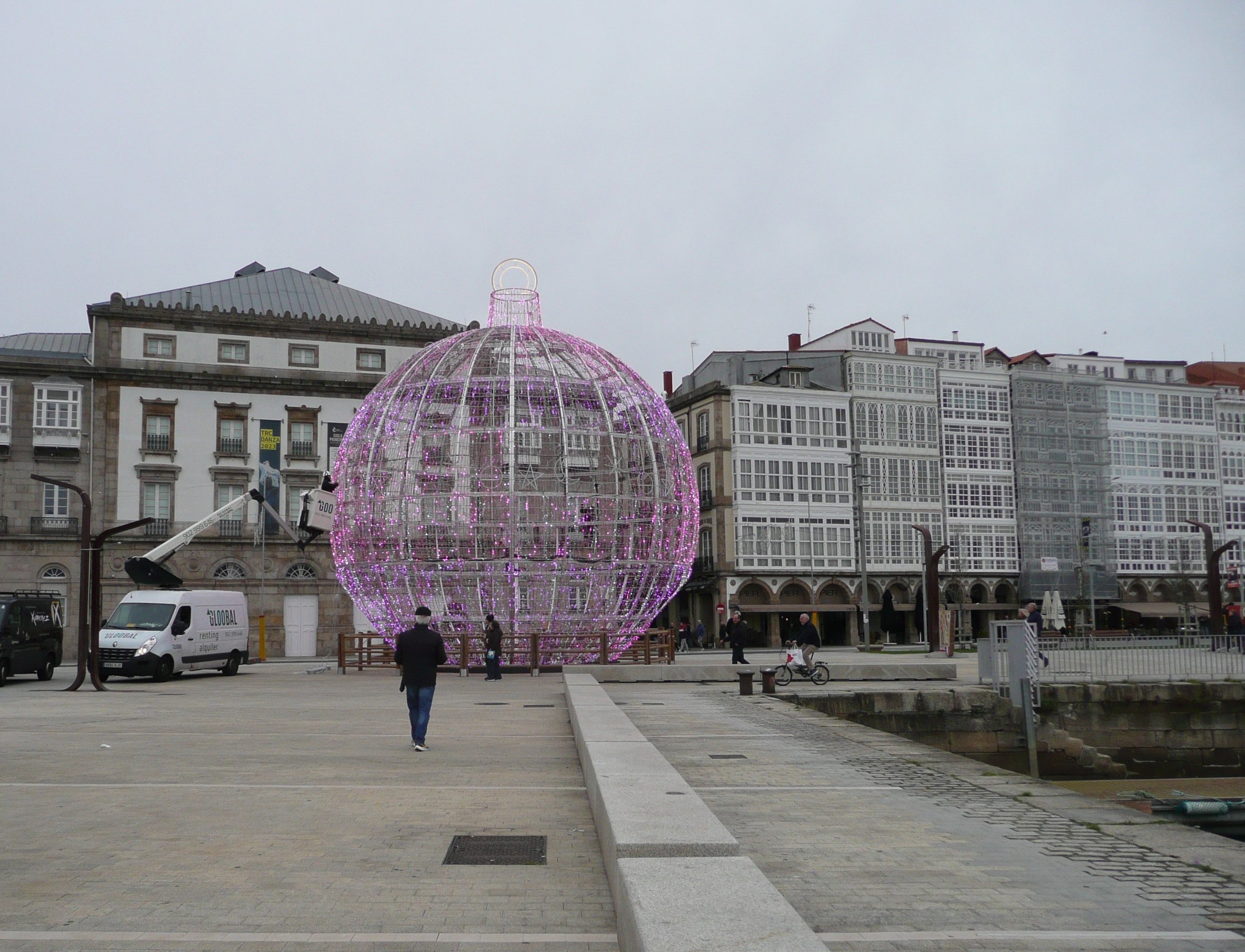 Zaraz potem zrobiło się pochmurno, ale najważniejsze było móc iść po czymś, co się nie kołysze. Miasto stroiło się do świąt, przywitało nas wielką bombką, na której wieszano światełka, wzdłuż większości ulic zwisały świetlne ozdoby: