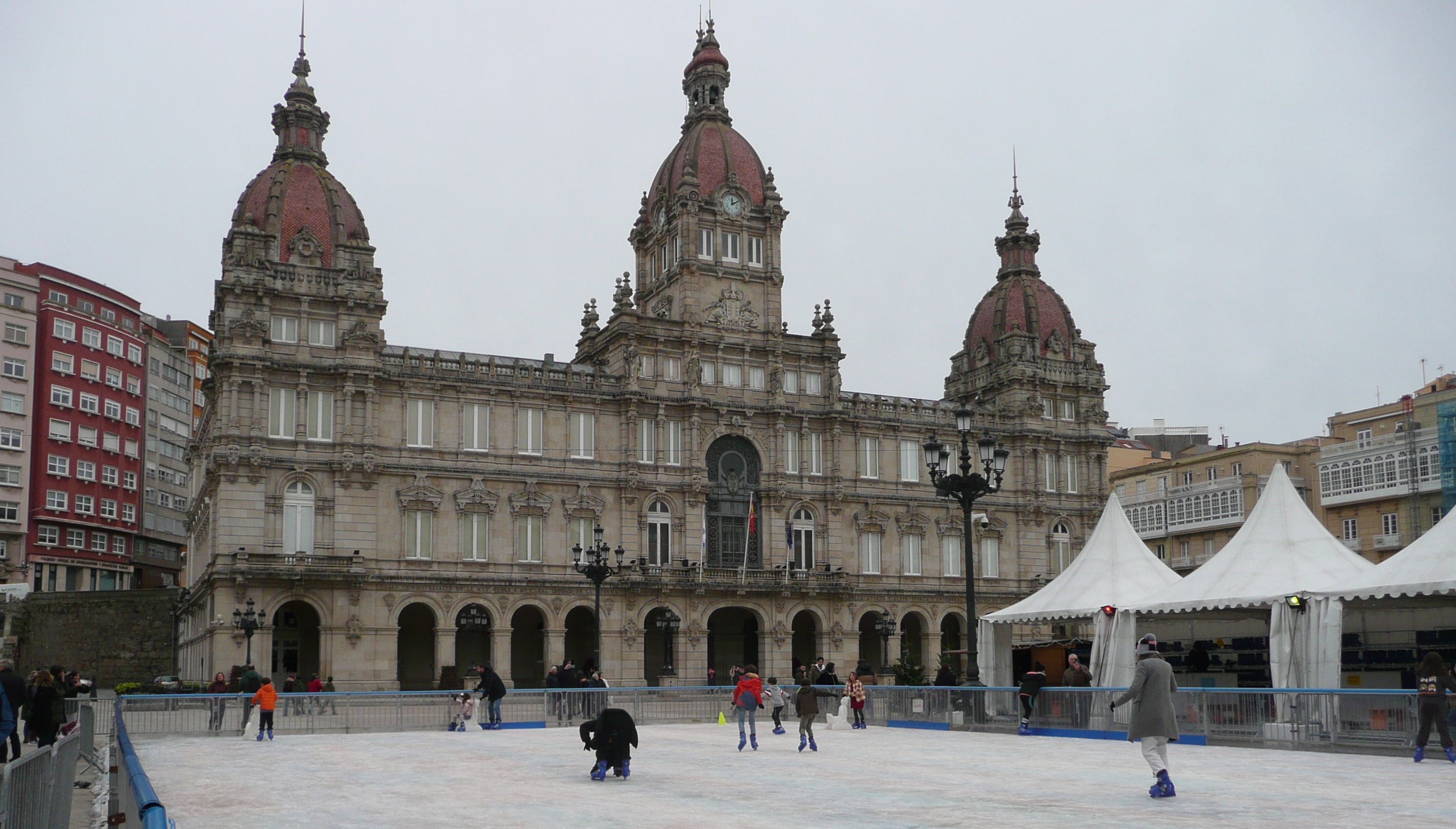 Trafiamy też na ratusz, piękny budynek przed którym miasto zrobiło lodowisko i inne atrakcje dla mieszkańców
