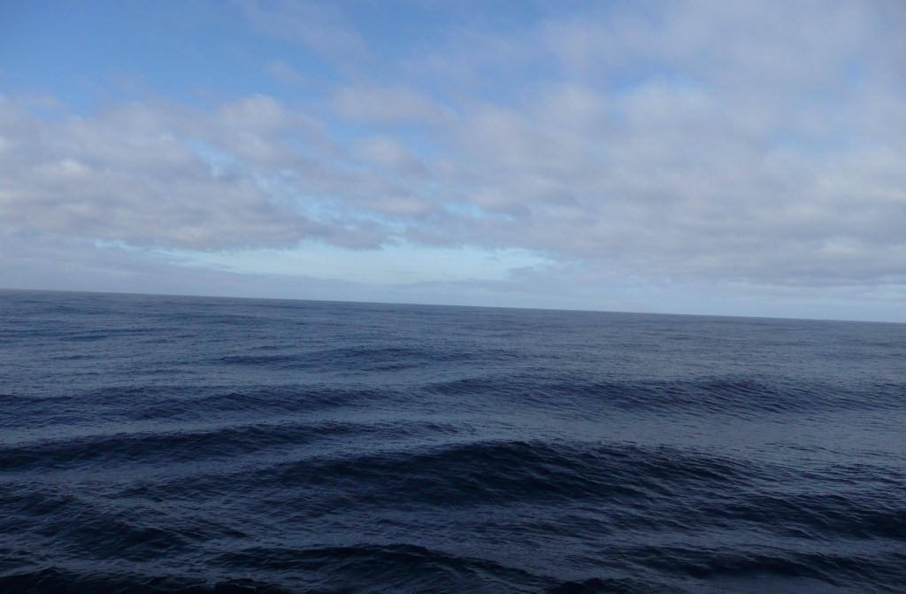 Dziś przestawimy czas o godzinę do tyłu po raz trzeci. Oznacza to, że obudzę się znowu za wcześnie o trzy godziny i będę czekać cichutko na świt i na śniadanko. Śniadanko zaczyna się od 7:30, kończy około 10-tej i jest jednym z najlepszych części dnia na morzu. Nie twierdzę, że się nudzę, ale niewiele mam do zrobienia w ciągu dnia, oprócz gapienia się na idealnie pusty horyzont, jazdy na rowerze na siłowni i jedzenia. Niewielu pasażerów mówi po angielsku, czy w innych znanych mi językach, więc nie spędzam czasu na ploteczkach czy morskich opowieściach (Andrzeju, jeśli to czytasz, to dziękuję za przypomnienie marynarskiej pieśni). Prawie wszyscy uczestnicy rejsu to Niemcy, reszta to Holendrzy i Szwajcarzy, a jeśli są goście z innych krajów, to nie miałam jeszcze okazji ich poznać.