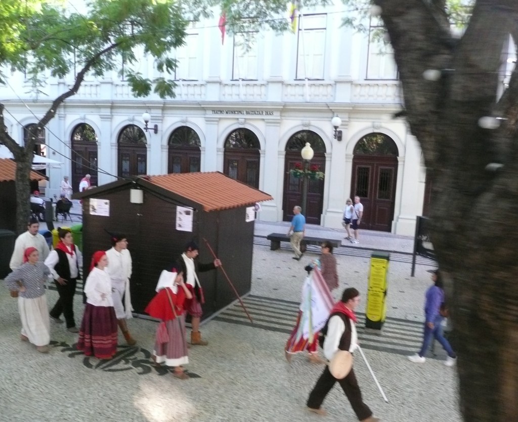 Potem łaziliśmy po mieście w poszukiwaniu apteki, bo Pana i Władcę użarło coś i spuchło mu oko. Neon apteczny pokazał temperaturę 35 stopni… ale pan aptekarz zaordynował maść z antybiotykiem i mogliśmy ruszać dalej. Miasto Funchal, którego nazwa pochodzi od kopru, znane jest najbardziej z tego, że urodził się tam jakiś piłkarz, Ronaldo, czy coś. Wszystko w mieście jest imienia Ronaldo, począwszy od lotniska, skończywszy na muzeum i pomniejszych atrakcjach.