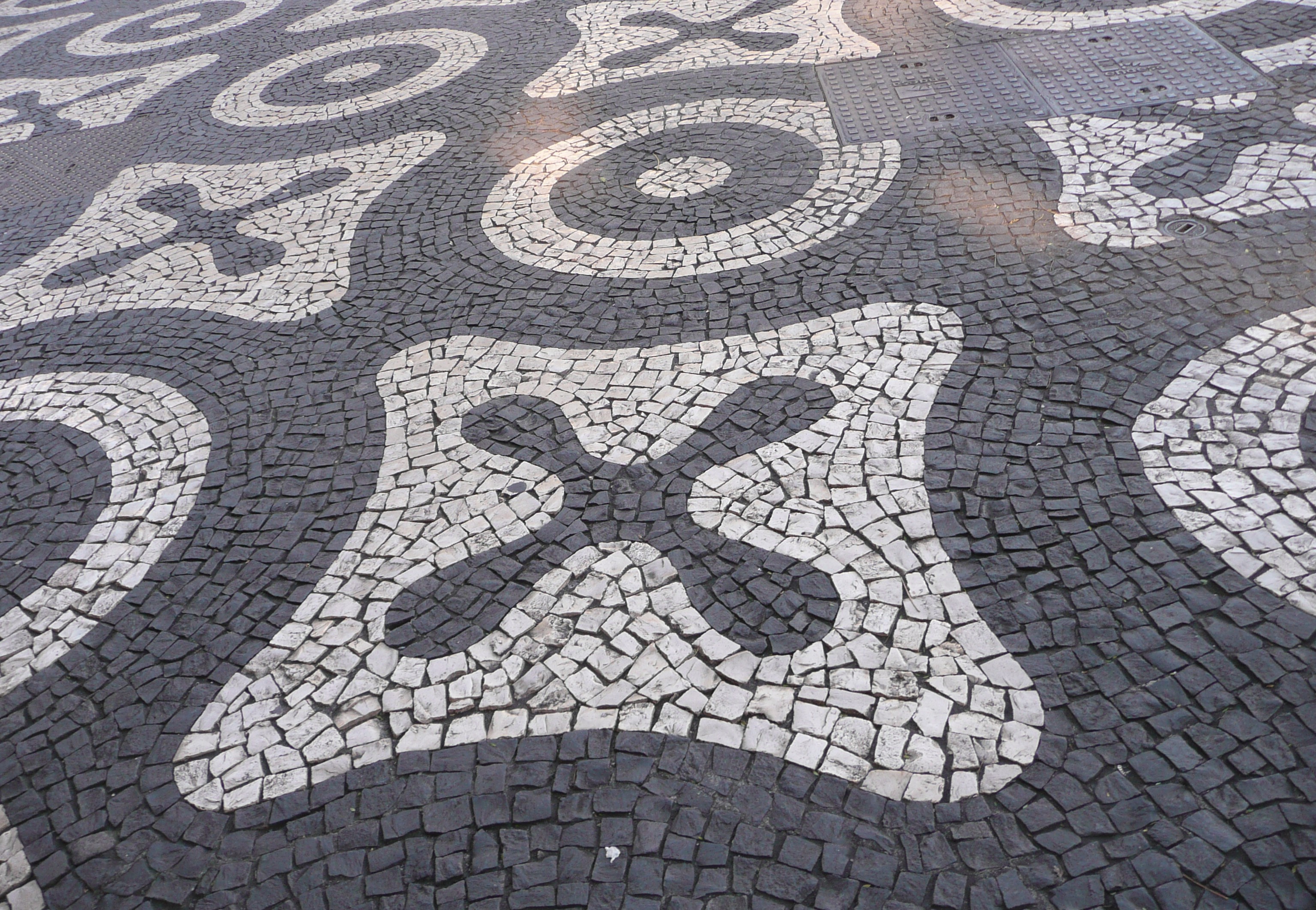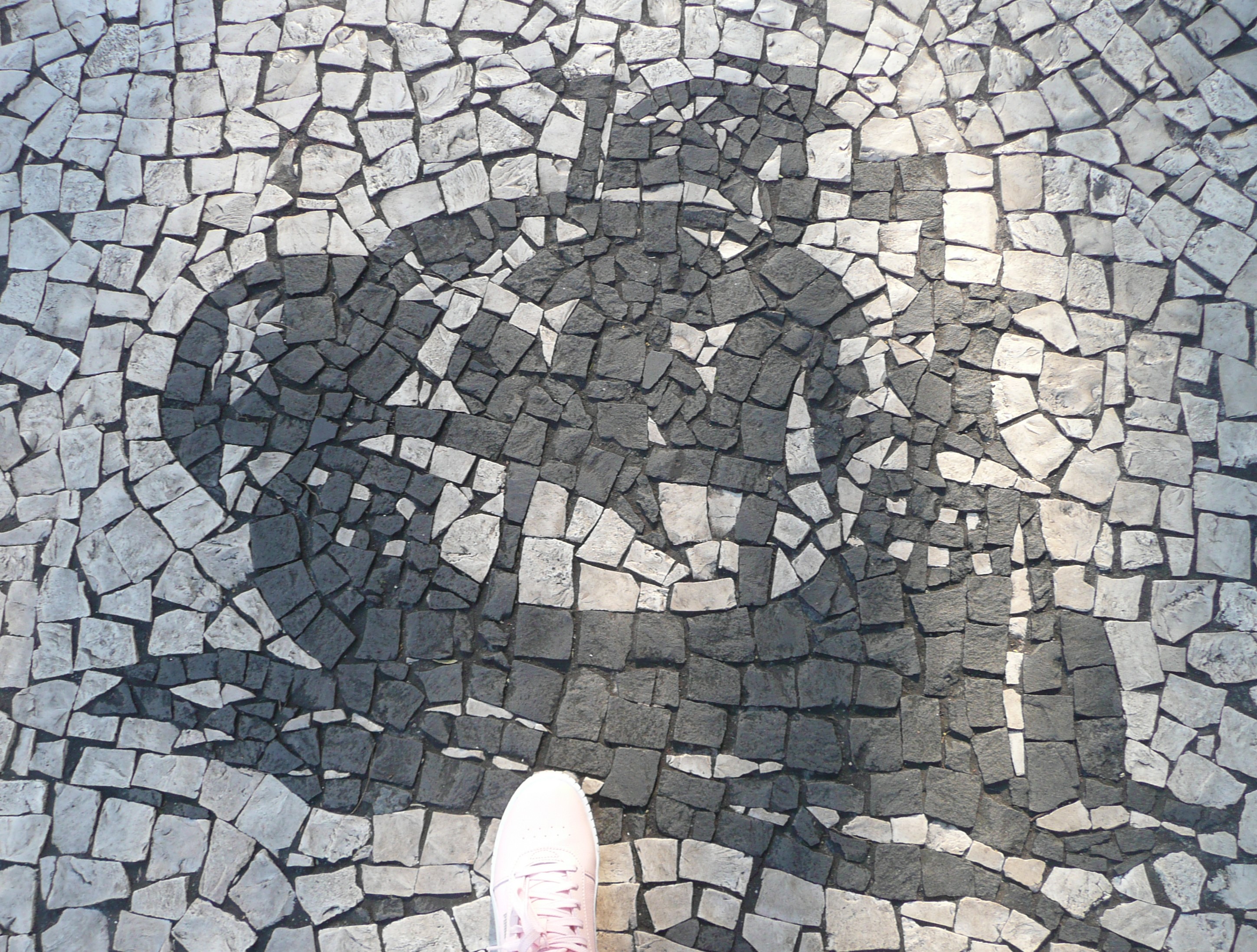 W Funchal są najpiękniejsze na świecie chodniki. Właściwie w każdym zakątku miasta mogliśmy podziwiać ułożone z bazaltowej kostki dzieła sztuki brukarskiej (wraz z kawałkiem mojego różowego trampka):