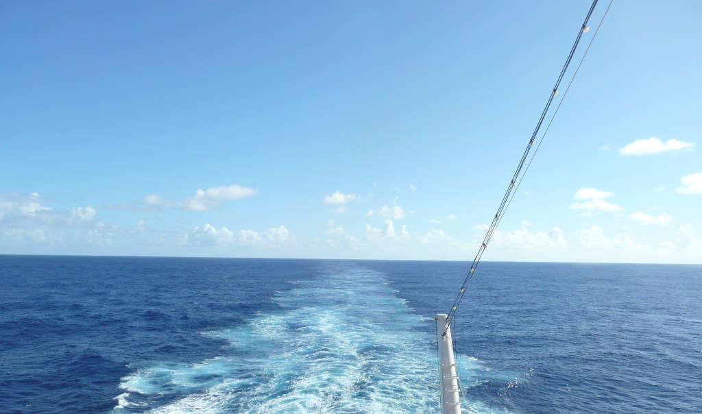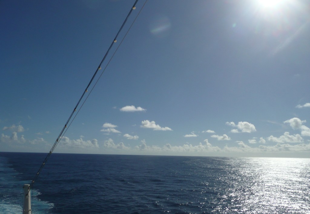 Mamy do przepłynięcia 820 mil morskich (1519 kilometrów) do następnego portu. Dni na morzu są zwykle trochę nudne, zwykle wszyscy włóczą się trochę bez celu po pokładach, siedzą w licznych barach i popijają kolorowe drinki, odwiedzają sklepy, gdzie ceny wykraczają poza zdrowy rozsądek. Właściwie poza jedzeniem niewiele jest do zrobienia. Trochę się czuję, jakbym mieszkała w wielkim centrum handlowym z widokiem na ocean.