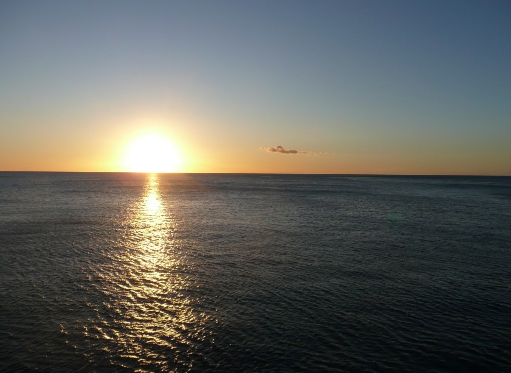 The Atlantic is my favorite ocean. It’s always been kind to me and friendly. I can’t complain about the Pacific either. Although we only knew each other for a month during my stay in California, I remember how terribly cold and unsociable it was. And what do you do on the ocean when the closest land is the bottom, with no ships, birds, or even sea creatures on the horizon?