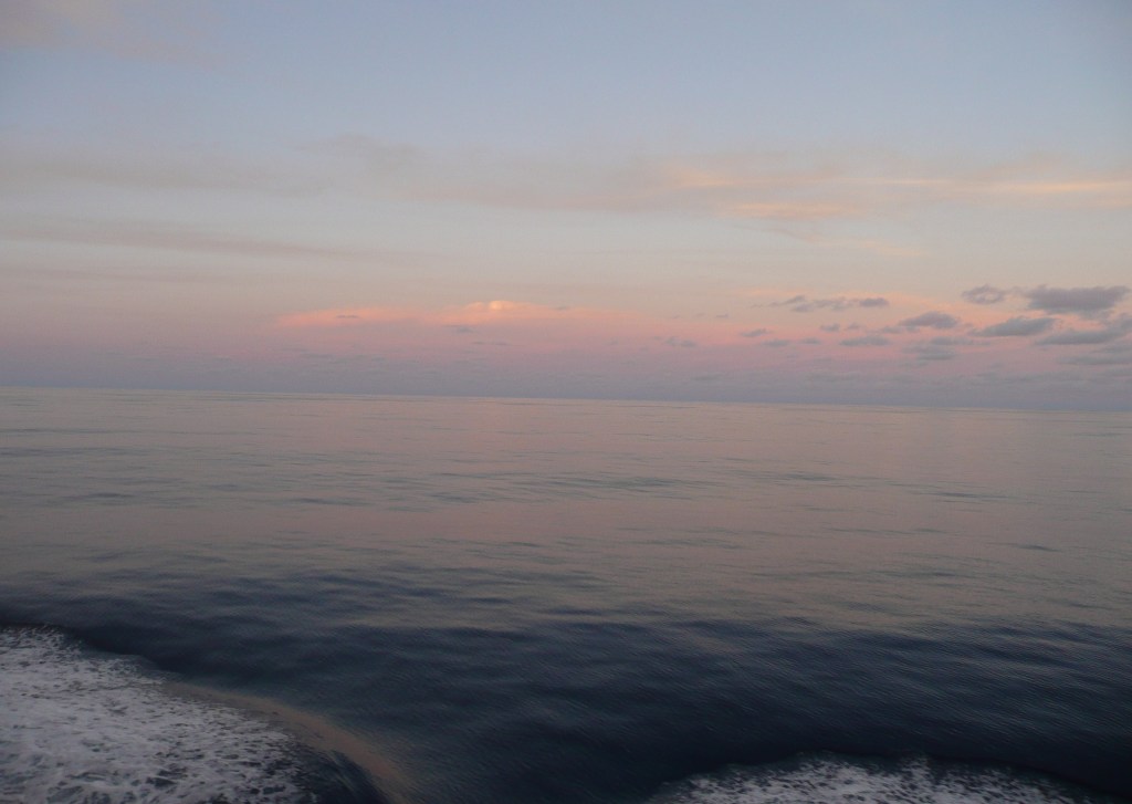 Ilość rzeczy, które można robić podczas podróży przez ocean jest ograniczona. Poza wylegiwaniem się na piątym pokładzie nie mamy zbyt wielu zajęć. Ogladanie bezmiaru wód jest oczywiście fascynujące, ocean ciągle się zmienia, a wypatrywanie wielorybów, na trasie wędrówek których jesteśmy jest cudowne, ale nie można robić tego cały dzień. Snujemy się po korytarzach, zaglądamy do barów i restauracji, ucinamy pogawędki ze współpasażerami i załogą. Chodzimy na siłownię na dziesiątym pokładzie, skąd widok jest bajeczny. Robię pranie w okrętowej pralni, co jest wielkim wydarzeniem towarzyskim. Pan i Władca wysłuchuje prelekcji w statkowym amfiteatrze. Prelekcje odbywają się codziennie, ale niestety po niemiecku, a to jeden z tych nielicznych języków, których nie znam (hihi), a Pan i Władca tak. Wieczorami są występy artystów, tancerzy i śpiewaków różnej maści, ale jest to raczej rozrywka niskich lotów i szybko mi się znudziła. Na pokładzie jest kilka polskich par i kilkoro Polaków wśród załogi, ale na tak wielkim statku nie spotykamy się za często.