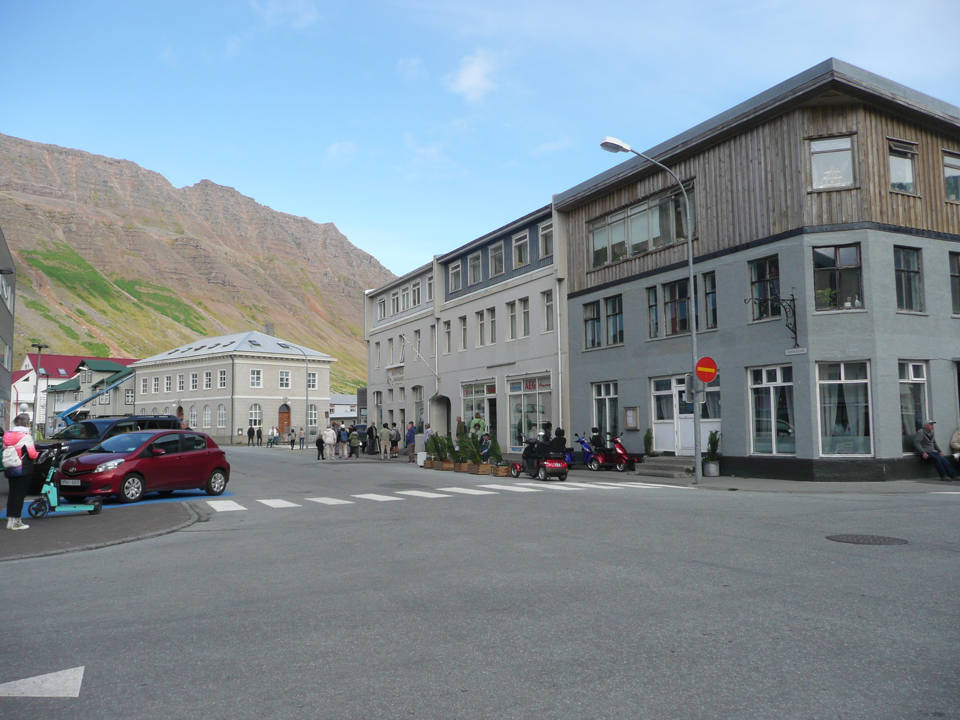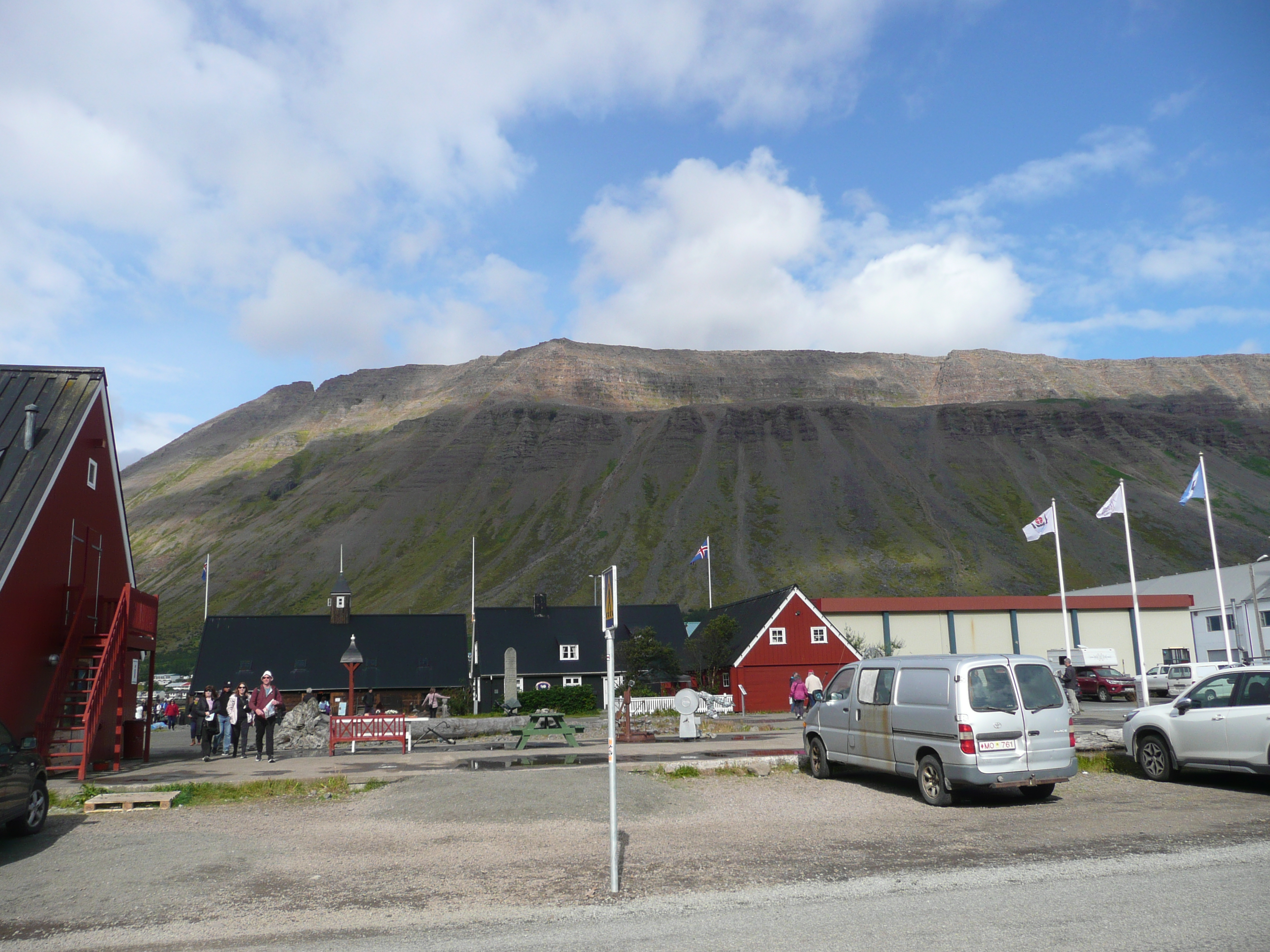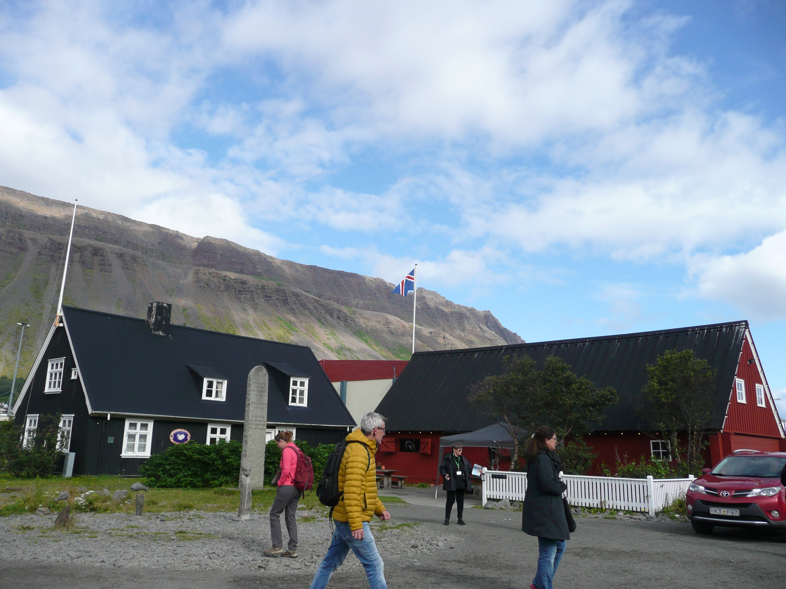 Ísafjörður to stolica Westfjords, ogromna metropolia z 2 770 mieszkańcami, powstała już w XVI wieku. Otaczają ją zewsząd fiordowe góry, dochodzące do 700 m n.p.m. U ich podnóży rosną lasy – info specjalnie dla tych, którzy myślą, że na Islandii nie ma lasów. Owszem, przez kilka wieków nie było, bo zostały wytrzebione przez pierwzsych mieszkańców na budowy domów i opał. Ale już są i rosną wielkie i zielone 🙂