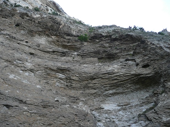 Widok z murów obronnych. Poniżej jest pionowa skała nie do zdobycia przez średniowiecznego rycerza. Ani nikogo, oprócz himalaistów – desperatów. W okolicznych jaskiniach mieszkali kiedyś ludzie… co ja mówię, kiedyś. Nadal mieszkają, co widać na obrazku poniżej. Tylko teraz mają drzwi, okna i internet.