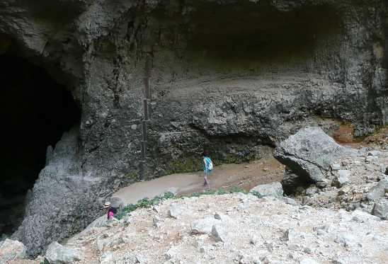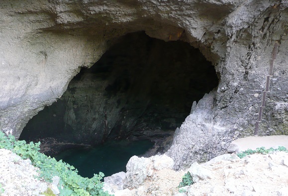 W tym roku, jak widać, stan wody jest bardzo niski. Najstarsi mieszkańcy nie pamiętają tak niskiego stanu wody, która w czasie deszczowych lat sięgała wysoko – na skałach po prawej stronie od wejścia widać znaczniki poziomu wody.