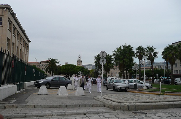 Nabrzeże skończyło się przed ogrodzeniem Prefecture Maritime (Prefektura Morska). Wielki budynek, przed którym przystojni oficerowie francuskiej Marynarki paradują w swoich ślicznych mundurach – trudno nie rozpoznać jego przeznaczenia. Działa przed wejściem mają zapewne odstraszać sznury panien, co za mundurem.