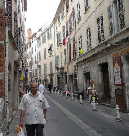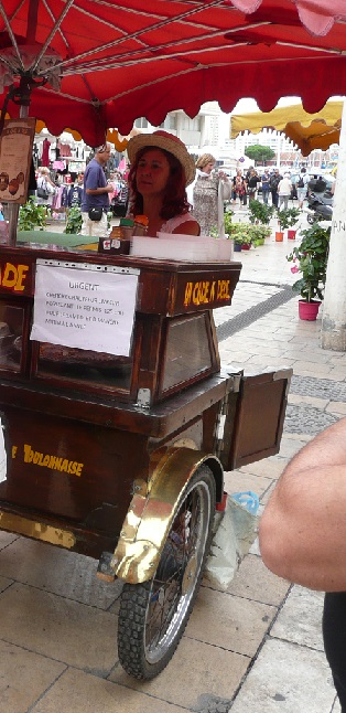 Francoise kupuje le cade i jakieś inne przysmaki z wózka na targu, pewnie chce mieć z głowy kolację po powrocie do domu i idziemy dalej, chłonąc zapach toulońskich uliczek. (łokieć na zdjęciu należy do Christiana)