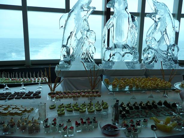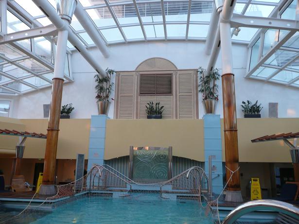Deck 10 is my favorite. And not just because it has a health club and spa and pools and jacuzzis. It serves breakfast, second breakfast, third breakfast, brunch, lunch, dinner, afternoon tea, and evening tea, plus a midnight snack if needed.