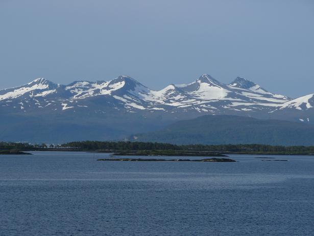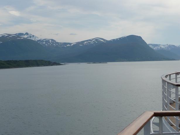 Wpłynęliśmy do portu Molde – miasta, które jest norweskim centrum hodowli róż, co na tej szerokości geograficznej może budzić małe zdziwienie. Ale pozory mylą, bo Molde chroni przed surowymi zimami błogosławiony Golfstrom i okoliczne wzgórza pokryte lasami. Jest usytuowane wzdłuż jednego z najbardziej malowniczych fiordów Norwegii – Romsdalfjord. Ze wzgórz wznoszących się nad miastem można zobaczyć 87 szczytów łańcucha górskiego Romsdal (niektórzy twierdzą, że owych ośnieżonych szczytów jest 222) i jest to widok przecudny, zwłaszcza w dzień taki jak dziś.