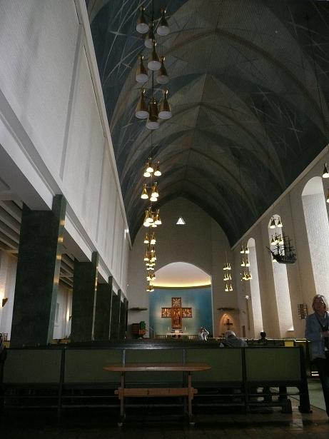 Tuż obok dachu ratusza jest niewielki (według polskich kryteriów) kościół z nowoczesną dzwonnicą. Nic imponującego z zewnątrz, ale w środku jest czarujący: skromny, biały, z ciemnym sufitem, bez złota i rzeźb, za to z modelami okrętów zwieszającymi się ze sklepienia.